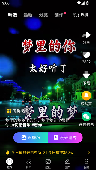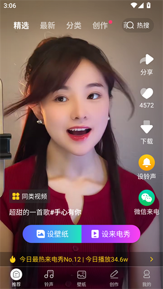 来电秀秀极速版app超好玩!它是手机来电美化神器,能让咱自由设定来电、短信、通知的铃声和亮光。全面支持自定义色彩、亮度与图案,给来电添乐趣。每天海量更新来电视频,资源超丰富,风格多样,各类视频都有,在线免费设置,让来电超个性。还汇集海量铃声素材,抖音神曲全有,分类清晰,能设视频来电秀,有海量动态壁纸和视频可选,操作简便。
