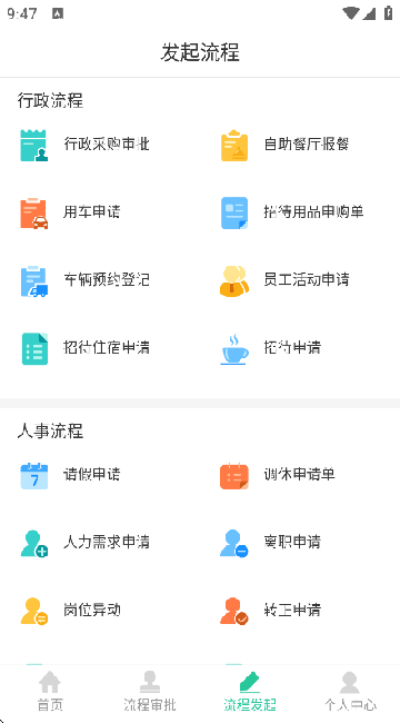 5.点击流程发起,选择适合的相关流程进行申请发布