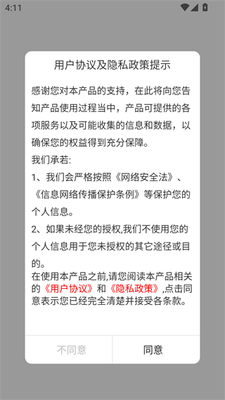 1、下载安装软件并打开,点击同意,进入软件主界面;