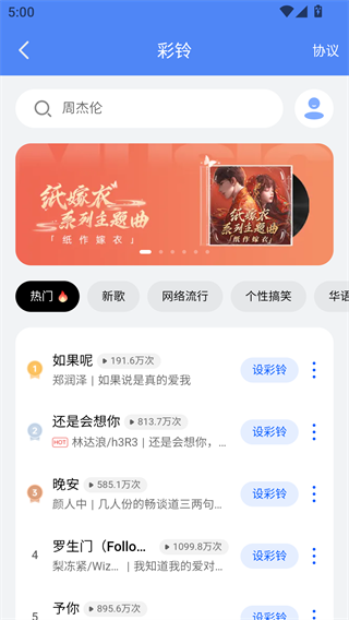 4、铃声板块里,还有各种热门铃声推荐,可以直接设置为铃声。