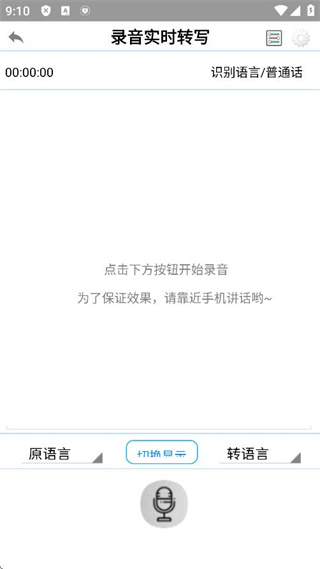 1、在实时转写页面,轻松点击切换语言功能,即可改变识别的语言种类;