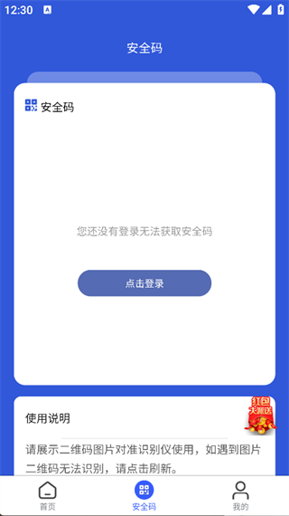 3. 点击页面下方的‘安全码’,登录之后即可获取安全码;