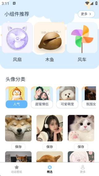 3、在精选中有很多精彩的头像分类,还有风扇、木鱼以及风车等分类信息;
