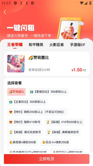 4、【闪租】界面有大量优质账号等你来选,你也可以在这里快速出租自己的账号。