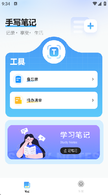 1、打开APP后进入首页,点击右上角的加号开始记事。
