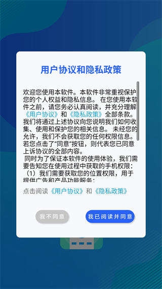 1、下载安装软件并打开,点击我已阅读并同意,进入软件主界面;