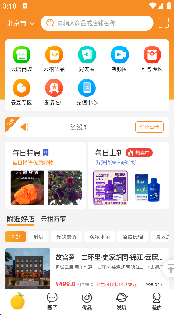 2、在“商圈”模块浏览周边商家,支持按分类筛选(如美食、超市、家政等)。