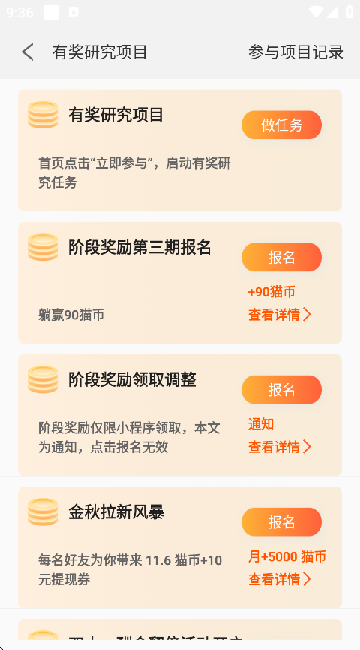 1、不定期推出不同人群的研究项目,用户可以根据自己的兴趣和需求选择参与。