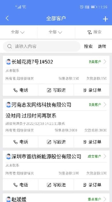 打开我的客户、全部客户、下属客户等板块进行查看客户信息