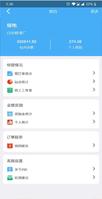 3、在「我的」页面实时查看修理厂收入、成本、利润等关键指标。
