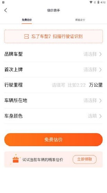 4、在首页点击免费估价即可进入界面,帮助你快速估价。