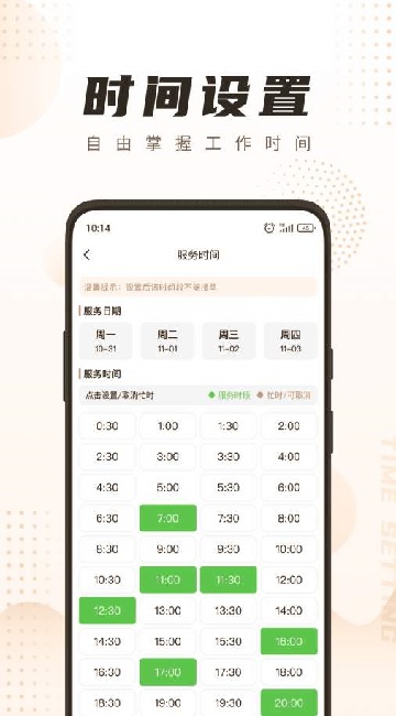 3、在时间管理页面,就能根据自己的工作需求,只有选择接单