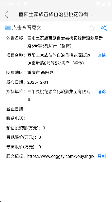 4、碰到感兴趣的招标信息,可以点击收藏或者追踪,随时了解动态。