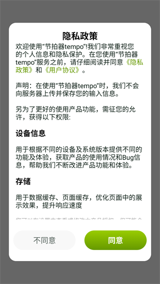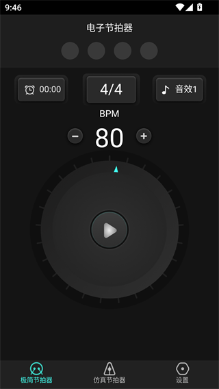 2、进入首页可以看到电子节拍器的各个调节功能。