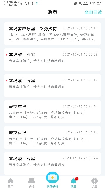 2、在“接待记录”页面查看历史接待详情,支持按时间、客户姓名等条件筛选。