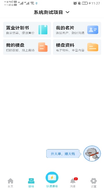 1、展示核心数据统计(如今日接待量、置业计划生成数、平均接待时长等),支持快速签到、查看待办任务。