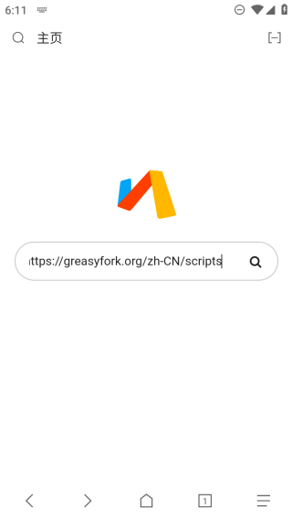 1、在本站下载安装好via浏览器,打开后,在浏览器搜索栏输入greasy fork脚本网站并进入。