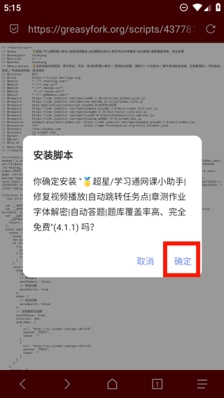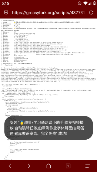 6、脚本安装成功,过程并不复杂,电脑端脚本安装步骤相同。