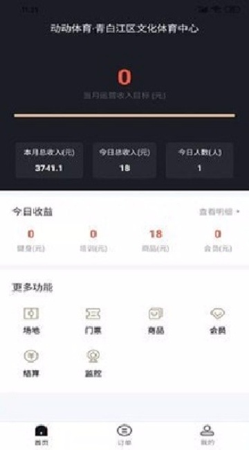 6、实时运营监控:收入明细、场地使用率等数据实时更新显示;