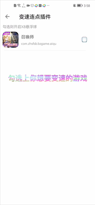 3、在组件管理界面勾选需要应用变速的目标游戏或应用