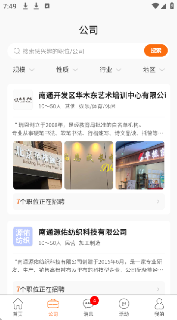 2、名企招聘会专区:实时更新南通地区举办的各类线下招聘会信息;
