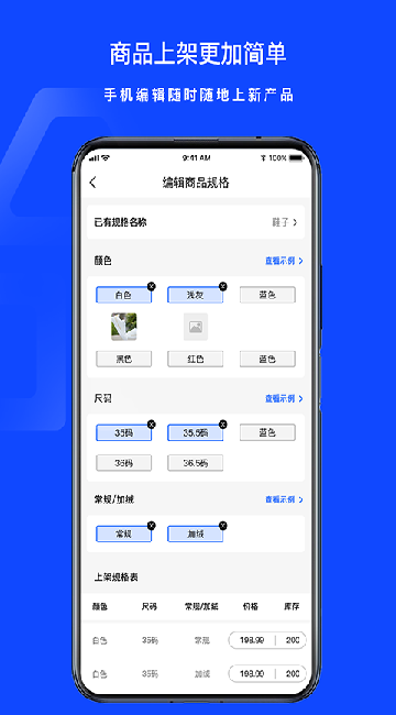 2、上架便捷:通过移动端即可完成商品信息编辑与快速上架操作
