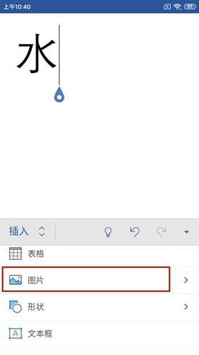 插入菜单包含表格、图片等素材选项,点击【图片】进入选择界面。