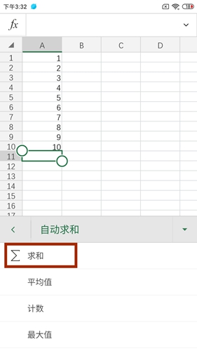 在展开的运算选项中选择【求和】功能。