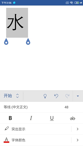 word文档字体调整方法:打开文档输入文本内容,长按选中需要修改的段落。