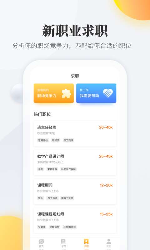 2、新职业求职可测试你的职场竞争力,精准推荐契合你的热门职位。