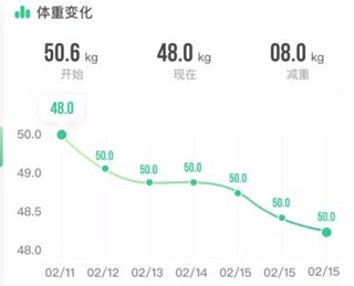 4、查看体重变化曲线,对比开始与当前体重,依据数据调整饮食与减重计划。