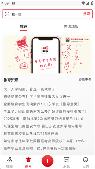 3. 点击页面下方的‘高考’图标,即可看到各类教育资讯;