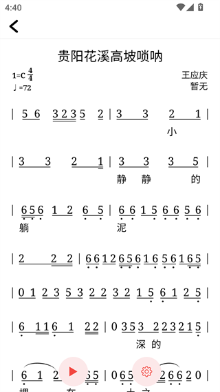 3、之后可以看到简谱的详细内容,点击左下角播放按钮可以直接播放;