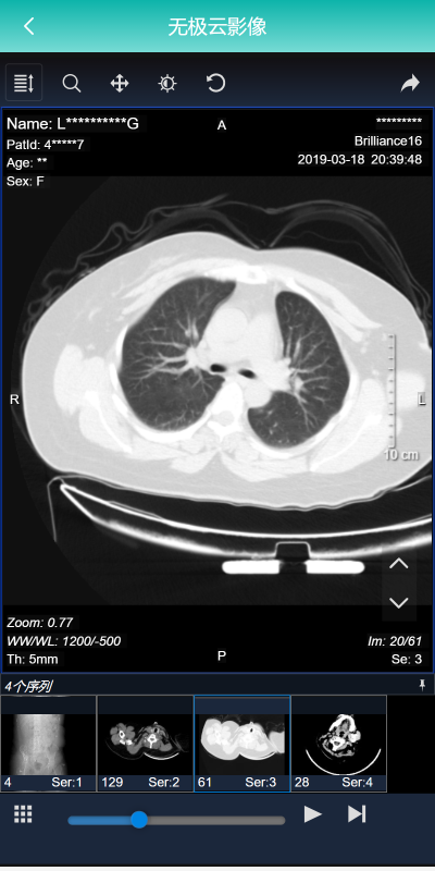 2、打开患者影像详情,浏览影像图片,切换序列,结合诊断结果,辅助病情判断。