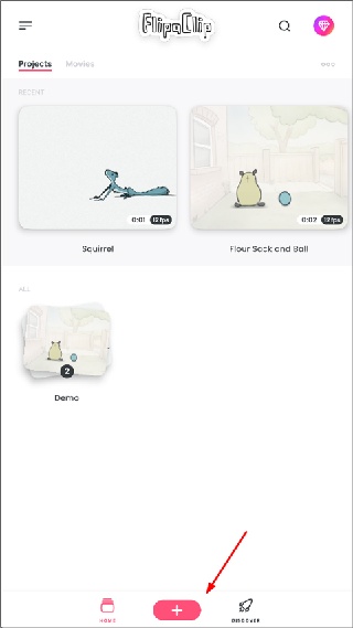 1. 首先打开FlipaClip,点击下方的加号。