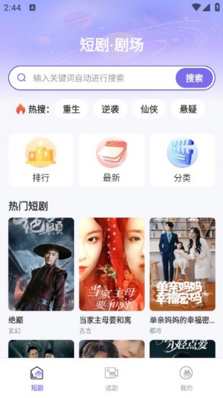 2、进入首页,可以看到丰富的不同题材的热门短剧;