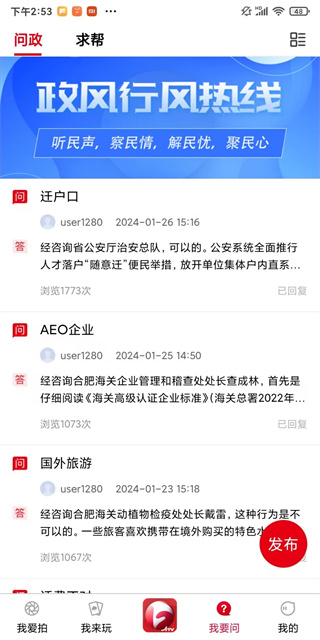 4、在下方我要问里面,可以向有关部门咨询问政。