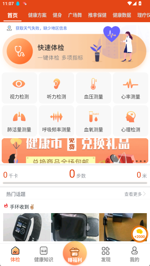 1、打开软件,进入首页,可进行快速体检,选择视力、听力等检测项目。