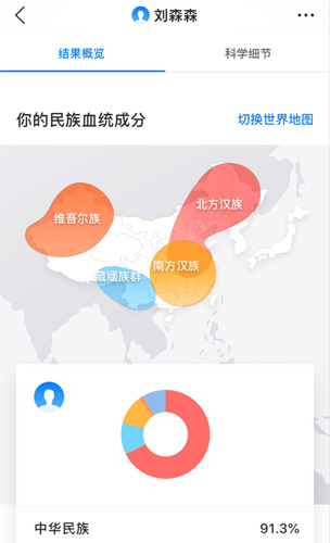 2、登录后,可查看民族血统成分,能切换世界地图,了解血统占比情况。