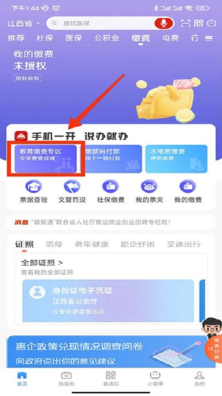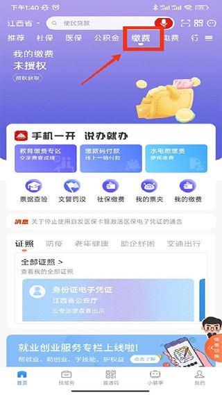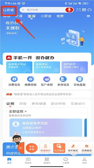 2.当下,赣服通app具备查、看、办、缴、约这五大强大功能。可实现线上医保缴纳、社保公积金查询、网上挂号、税务查询、证件办理等。