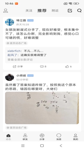 3、下载好软件进入平台之后,需要进入动态,多种互动功能等都有。