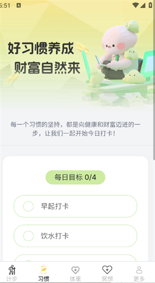 3. 点击页面下方的‘习惯’,即可设定每日打卡目标;