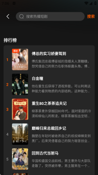 4、在搜索页面中可以输入关键字进行搜索热播的短剧,还可以了解最新的排行榜。