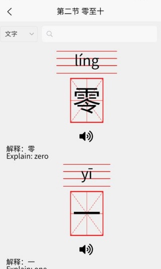 1、提供汉字的拼音、字形展示以及英文解释,帮助学习者多维度认识汉字。