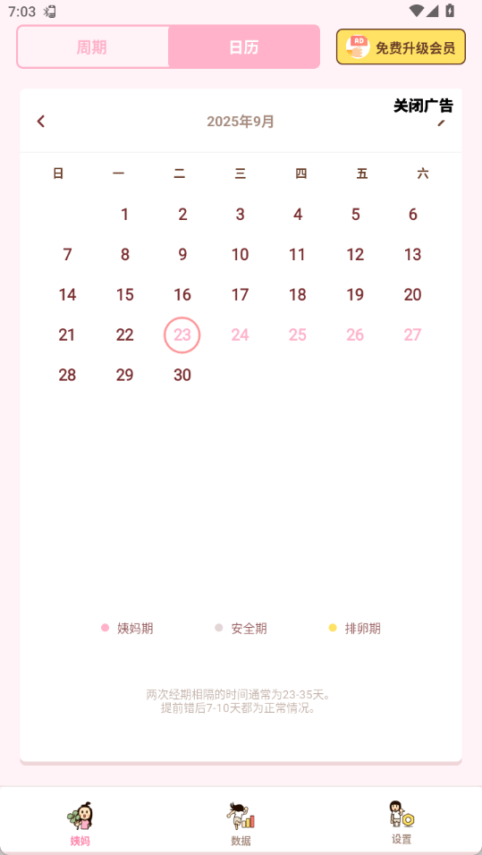 4、也能在日历页面,查看姨妈期、安全期、排卵期的日期分布。