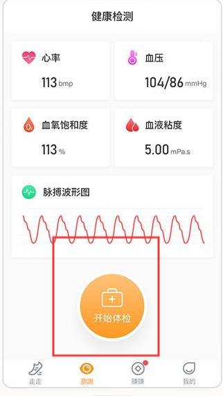 1、打开软件,进入健康检测页面,点击 “开始体检”,检测心率等健康指标。