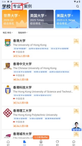 1. 拥有全球院校库,其中涵盖大概312所学校与7085个专业的详细信息。