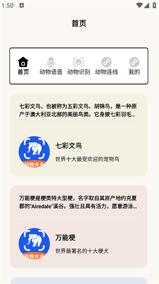 1. 内置丰富多样的动物内容,它不仅提供了详尽的动物信息,还通过多种方式帮助用户更好地认识和了解动物;