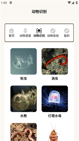 4. 点击页面上方的‘动物识别’,即可看到不同动物的详细介绍。