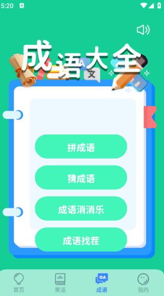 4. 点击页面下方的‘成语’,即可看到拼成语、猜成语、成语消消乐等功能;